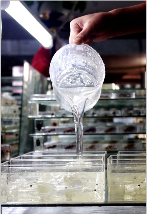 3、標本體放入透明模具、添加樹脂材料進行封埋